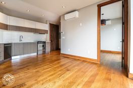 This 2 bedroom apartment features spacious living room, queen sized bedrooms, stainless steel kitchen, modern bathroom, hardwood floors, and windows that let in natural light throughout.