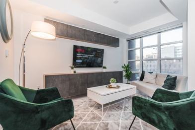 All-Inclusive (Internet/Hydro) And Professionally Furnished Kingly Condos In The Heart Of King West! Move-In Ready, Just Bring Your Clothes! Brand New Gorgeous Boutique Building And Central To Everything Downtown, With Toronto's Best Restaurants, Night Life, Cafes On Your Door Step. Minutes To Financial District, Queen West, Waterfront & Liberty Village! High End Furniture, Custom Shelving And Brand New Samsung 65 Inch Tv Included.