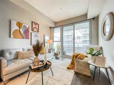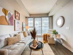 1+1 Bedroom, Gorgeous, sun-filled layout, 2bath in lighthouse condos by daniels with quality finishes. East exposure, floor to ceiling windows, 9ft ceiling. Kitchen with quartz countertop, matching island, integrated miele appliances. Spacious balcony for outdoor relaxation.