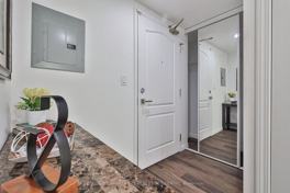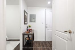 Welcome to Wellington Square! This rarely available 1 Bedroom + Den suite is a true gem in a boutique building tucked away on a quiet cul-de-sac. This spacious condo offers 742 sq. ft. of interior living space plus a 91 sq. ft. balcony perfect for enjoying morning coffee or evening sunsets. The enclosed den offers flexibility and can serve as a second bedroom, home office, or nursery. Step into the suite through a welcoming foyer featuring a large double closet with sleek glass sliding doors ideal for seasonal storage and extra convenience. Just off the entry, you'll find the spacious den a great option for guests, kids, or your home office. The kitchen boasts beautifully refinished cabinets (2022), brand-new quartz countertops (2025), and a modern ceramic tile backsplash (2025). The breakfast bar opens to a bright, open-concept living and dining area, framed by floor-to-ceiling windows and sliding doors that lead to the oversized balcony perfect for entertaining or relaxing. Appliances include a brand-new stove and microwave (2025), and the suite also features a stackable washer/dryer for added convenience. The primary bedroom is generous in size and features floor-to-ceiling windows, a walk-in closet, and a beautifully updated 4-piece ensuite complete with new quartz counters, American Standard toilet, acrylic bathtub, and new shower fixtures (2025). Additional upgrades include brand-new vinyl flooring throughout (2025). This suite also comes with 1 parking space and 1 locker! Enjoy all that King West has to offer just steps from Queen West, Trinity Bellwood, The Well, Liberty Village, Stanley Park, the CNE, and the waterfront. Transit at your doorstep! Amenities include a rooftop patio with BBQs, gym, games room, party room, and visitor parking. Don't miss your chance to call this beautiful suite home!