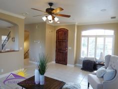Near Highway 50 and Hazel Avenue in Visage, Fair Oaks, this gorgeous three-story single-family luxury home, in a gated community, offers five bedrooms and three and a half bathrooms. This home has programmable three-zone central heat and air conditioning, as well as a fire suppressant system and a security system. The tile entry opens onto carpeting, tile flooring, arched doorways, phantom screens, recessed lighting, cherry cabinets with tile counters, dual pane windows and plantation shutters throughout 2601 square feet of living space. The living room has an ornate gas fireplace with bench hearth, a ceiling fan with overhead lighting, built-in cherry media center, and Surround sound. There is a formal dining room with overhead lighting, built-in cherry hutch with lighting, and a glass door to the balcony and its wonderful view. The separate family room has a huge walk-in closet, ceiling fan with overhead lighting, Surround sound speakers, a wet-bar, and a glass door to the rear yard. The loft has overhead lighting and huge built-in cherry desk and cabinets.