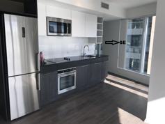 A fabulous 535 sq. feet 1 bedroom corner condo, en-suite laundry, stainless appliances, granite countertop, open-air balcony, laminate flooring, spacious open concept with excellent floor plan, 9ft ceiling windows flooded with the natural light of South-East exposure, and city view.