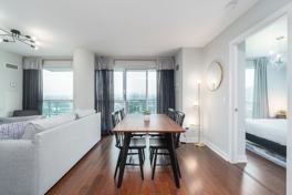 Welcome to this fully furnished, designer-decorated executive 2 Bedroom, 2 Bathroom suite located in the heart of Liberty Village. Unbelievable Skyline View of CN Tower and Lake Ontario. Split layout. No wasted space. Bright Master Bedroom with upgraded bathroom, walk-in closet and corner windows facing north and east. Large private, covered balcony! Excellent building amenities: three gyms, pool, hot tub, steam room, party rooms, private theatre, and cyber office space.