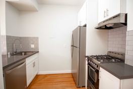 -Stainless steel appliances which include a gas range stove, dishwasher, and refrigerator