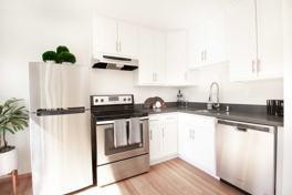 -Updated stainless steel appliances including refrigerator, dishwasher, and electric stove/burner with vent hood