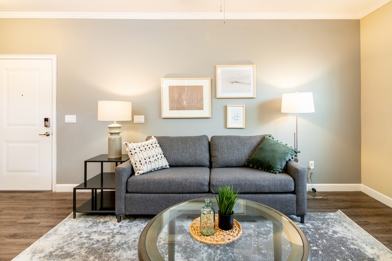 When you enter your Landing home for the first time, you'll notice the modern tones throughout, from the open concept floor-plan to the perfectly paired with the sleek kitchen with stainless steel appliances. Our included furniture and decor are expertly selected and placed for this individual layout, and the mounted Samsung Smart TVs are ready for your enjoyment. Finally, your home is filled with our convenience amenities from the luxurious bedding to the completely stocked kitchen. Every element of your new home invites you to step right into a hassle-free living experience.