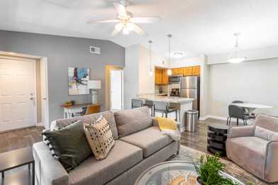 When you enter your Landing home for the first time, you'll notice the modern tones throughout, from the open concept floor-plan to the perfectly paired with the sleek kitchen with stainless steel appliances. Our included furniture and decor are expertly selected and placed for this individual layout, and the mounted Samsung Smart TVs are ready for your enjoyment. Finally, your home is filled with our convenience amenities from the luxurious bedding to the completely stocked kitchen. Every element of your new home invites you to step right into a hassle-free living experience.