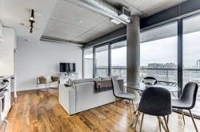 Gorgeous & Spacious 2 Bed+2 Bath Loft Style Corner Condo At River City 3, Finishes Include High Exposed Concrete Ceilings, Large Floor To Ceiling Glass Sliding Doors/Windows. Tons Of Luxurious Amenities (Concierge, Gym, Party Room, Outdoor Pool, Hobby Room, Yoga Room And More) And Conveniently Located Within Walking Distance To Distillery District (10 Minutes), Corktown Commons (2 Minutes); Leslieville (5 Minutes); And, Stops For Ttc King And Queen Streetcars