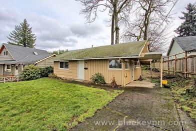 2 bedroom 1 bath home in St. Johns neighborhood near St. Johns Bridge and George Park off of Fessenden Street. Easy access to I-5. This home has a large backyard and a carport. The living room is spacious with two windows and two exterior accesses. It has an eat-in kitchen with a pantry and plenty of cabinets. The bathroom has tile accents, tub/shower combo, pedestal sink and shelving. Both bedrooms are spacious and have large windows. Gas forced air heat. Washer/Dryer hookup. 2 Pets up to 60 lbs welcome. Refundable pet deposit $800 for each approved pet. View our VIDEO tour on our website at www bluekeypm com