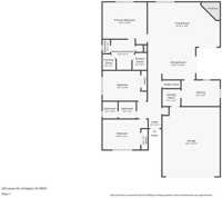 The primary suite includes double closets and a full bathroom with a standard soaking tub. The second full bathroom is positioned to serve the remaining bedrooms and common areas with easy access.