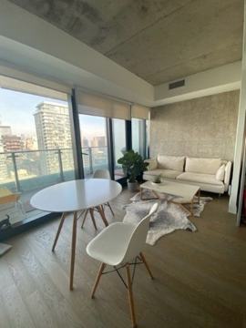 Fully Furnished & Available On Monthly Basis. Stunning Theatre Park. Hardwood Florr Through Out. 2 Minutes Away From The Subway St. Andrew Station. Access To King Street Car, Path, Tiff, Live Theatre, Dining, Countless Entertainment Options, Financial District, And Hospital Row. 9+' Ceilings, Exposed Concrete Walls & Ceilings, Floor To Ceiling Windows For Wide Open Views. Building Features 24 Hr Concierge, Gym, Lounge With Walkout To Outdoor Pool.