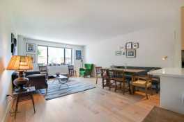 Spacious one bedroom home with a large open living area featuring sunny Southern views. Newly renovated kitchen and bathrooms feature quartz counter tops and stainless steel appliances. An entertainer's dream! The bedroom is large enough for a king bed .