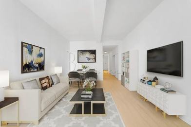 Convertible 2 bedroom Financial District apartment featuring a spacious layout that allows an easy conversion into a second bedroom while maintaining a comfortable living area. Bright apartment with large windows and excellent natural light throughout. Apartment features include hardwood floors, modern kitchen, stainless steel appliances, and ample closet space. Flexible layout ideal for shares or anyone looking for extra space in a luxury Financial District building near the waterfront.