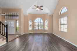 Located in upscale community, this 4 bedroom two-story home boasts 4 bedrooms upstairs, a convenient office on the first floor, and plenty of space for all. As you enter, you'll be greeted by cathedral style vaulted ceilings with updated fans and fixtures. The formal dining and living room are perfect for entertaining. Granite countertops in kitchen with stainless steel appliances and newly refinished, white cabinets. Stunning fireplace in spacious family room. 1/2 bath downstairs with granite counter vanity located right next to the office space. Upstairs, you'll discover the bedrooms and a small loft area overlooking the living room. Large master bedroom with walk-in closet and full master bath including custom tile walk-in shower, large tub, and dual sinks. Dual sinks with granite countertops. Tile and glass door walk-in shower and separate tub. 3 guest bedrooms are all generous in size. Located in golf course community with additional amenities including community pool and workout facility. 3 car garage with clean desert landscaping in front and back. Sparkling swimming pool with POOL SERVICE INCLUDED!