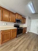 This well-maintained 3 bedroom, 2 bath home offers 1,344 square feet of comfortable living with updates throughout. Fresh neutral paint and updated fixtures create a clean, welcoming feel, while carpeted bedrooms provide cozy retreats and modern wood-look flooring enhances the kitchen and wet areas. The kitchen is both functional and inviting, featuring matching stainless and black appliances including a refrigerator, dishwasher, microwave, and stove. An eat-in kitchen area pairs nicely with a breakfast bar that offers additional seating and opens to the main living space. The living room feels bright and open with vaulted ceilings that add to the home's airy layout. The primary bedroom includes a walk-in closet and a private bath with a garden tub and shower combination. The additional bedrooms are generously sized and versatile, ideal for guests, a home office, or extra storage. Outside, you'll find a fully fenced backyard that offers privacy and room to enjoy the outdoors, along with an open back patio perfect for relaxing or entertaining. Conveniently located just 0.6 miles from Navarre High School, this home combines comfort, updates, and a great location in one inviting package.