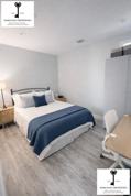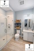Additional features include a Whirlpool washer and dryer in the unit, a modern bathroom with a tiled walk-in shower, and dual closets in the bedroom providing excellent storage space.