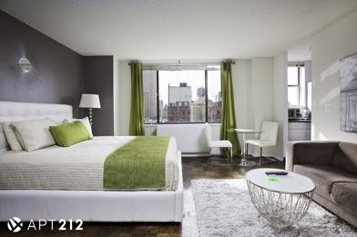 Fully furnished Studio apartment located in the heart of Columbus Circle, at the corner of West 56th Street and 8th Avenue! This 25-story building is full of spectacular amenities including doorman, elevator, concierge, gym, garage, and laundry in-building. The property also has a gorgeous roof deck, a garden, and a handsome grand entrance stairway.