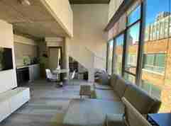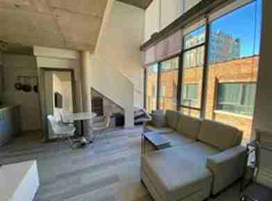 **Fully Furnished** 2 Story Loft W/Soaring Ceilings, Massive Windows And Juliette Balcony Allows Great Light And Soho-Like City Vistas. Tucked Away On A Quiet City Block, Yet Steps To Vibrant King & Spadina W/Shops, Restos, Cafes And Amenities. Not An Inch Of Wasted Space Here-Great Open Kitchen, Floating Stairs, Private Master W/Large Closet And 4-Piece Bath W/Dual Rain Showers. Incl All Utilities!