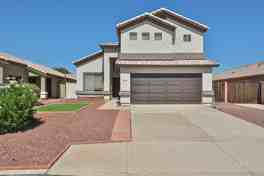 All you want in a home! Large lot, private pool, 4 bedrooms, 3 bathrooms, and 2 bonus rooms! One full bedroom and full bathroom, plus two office space/dens with closets also on the main. Upstairs is the exquisite primary with ensuite and 2 spacious bedrooms with Jack-and-Jill bathroom. Tile flooring on the main and carpet upstairs. Ceiling fans, two toned interior paint throughout. Solar panels provide ideal monthly utility bill. Utilize the attached Arizona sunroom with wall unit AC and access the turf side yard or the fenced-in pool. Tour and apply now!