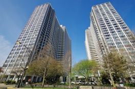 Newly renovated south east corner unit with lake, park and downtown views. Brazilian Cherry floors and brand new carpet in both bedrooms. Granite kitchen island and marble baths. Building features 24/7 doorman, basic cable, exercise room, outdoor pool, dry cleaners, convenience store, and cafe. $250 move-in fee, $250 transfer fee, $200 refundable elevator deposit, garage pkg $295/mo short waiting list.