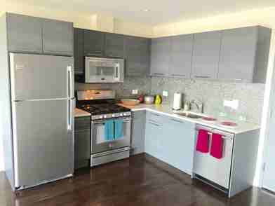 “Lifestyle of the Rich and Famous” inspired home! Huge terrace w/ NYC skyline views! Laundry in unit Apartment Features:-Dark oak flooring throughout-Oversized windows and integrated shades-Frigidaire Stainless Steel Appliances-Grohe and Kohler faucets and fixtures in kitchen and bathroom-White quartz countertops-Full-height backsplashes-Custom modern cabinetry-Bosch washer & dryer Building amenities:-24 hour attended -Fitness Center-Bicycle storage-On-site parking-On-site car rental-Valet services-Residents’ lounge featuring Wi-Fi, flat screen TV’s and library with individual workstations-13,000 sqft rooftop featuring chaise lounges, BBQ grills, dining area, bar, showers, lushly manicured landscape