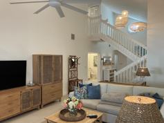 Turnkey 3-bedroom, 2.5-bath single-family home located in a gated waterfront community just moments from downtown and pristine beaches. This residence offers spacious living and dining areas, a main-level en-suite primary bedroom, and an updated kitchen with breakfast area. Guest bedrooms are thoughtfully positioned upstairs. Tastefully furnished and meticulously maintained, the home features impact windows and plantation shutters throughout. Enjoy a heated pool and covered patio, set against a completely private, lush tropical garden backdrop.