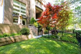 Outdoor living is equally impressive with two private terraces, a built-in gas grill, and a pet-friendly fenced yard—a rare find in this coveted location.