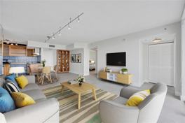 Let the sun shine on in! Great corner unit with fantastic natural light, split bedroom plan and TWO balconies. Neutral grey tile with washer/dryer in the unit. Full amenity building with 24/7 front desk, security, valet, gym, pool, spa, party room, BBQ, EV charging and more. Conviniently located next to the recently updated and improved Maurice Gibb park featuring sitting areas, new landscaping, walkways, fishing areas, and children's playground. Marina offering free seasonal water taxi service and incredible downtown Miami views also next door. Step out and enjoy shopping, coffee, restaurants, spa services, gyms, groceries and more-all within a 5 minute walk. One assigned covered parking space, second space if needed available with valet or parking garage across the street.