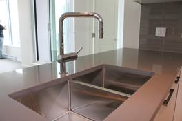 - The stylish 15 cu ft Fagor (or Blomberg in some homes) refrigerator features bottom mounted freezer door and seamlessly integrated into the custom cabinetry.