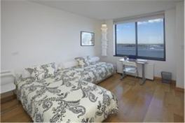 Panoramic river views from every room. Beautifully furnished 2 bedroom/2 bathroom apartment in the luxury Liberty Terrace Condominium. Sun-flooded corner unit with a huge master suite. New kitchen appliances, granite countertops, and beautifully renovated bathrooms. Large closets and additional built-in storage. Tastefully furnished and ready to move in. Conveniently located near subway lines 1, N, R, 4, and 5.