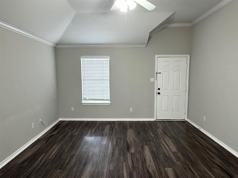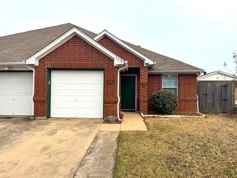 Cute 3 bedroom, 2 bath duplex near downtown Aubrey! This unit features an open floor plan, luxury vinyl plank throughout the home, and a decent-sized backyard. The unit also has a 1 car garage with a shared driveway. Primary bedroom includes a walk-in closet and an ensuite bath. Refrigerator included. Property has quick and easy access to US-377 & downtown Aubrey. Aubrey ISD.