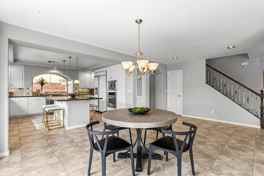 The spacious family room includes custom built-in shelving and a dedicated workspace, making it ideal for both relaxation and productivity. A central vacuum system offers added convenience throughout the home.