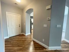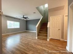 Enjoy M/M wood flooring throughout the first level and an open, airy kitchen featuring crisp white cabinetry, stainless steel appliances, a pantry, and a convenient breakfast bar. This home offers abundant storage, ceiling fans throughout, and a generously sized primary bedroom with an ensuite bath. Step outside to your private backyard oasis complete with a pool and spa—pool and yard services included for effortless living.
