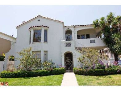 Incredible location - incredible duplex! Beautiful 1930s Spanish 3 bedroom 2 bathroom plus den/library upper unit with over 2,200 square feet. Exquisite original details throughout such as original hardwood floors, original tile bathrooms, crown moldings, stained glass windows, and skylight, detailed ceilings, many built-ins, wall stencils in all three bedrooms, crystal chandelier, and hall mirror. Huge wrap around front balcony. Grand living room with leaded glass picture window, and wood burning fireplace. Tremendous master suite with cedar closet and vanity area. Large formal dining room, separate laundry room with washer/dryer hook-ups, dishwasher, central heat/AC, tons of closet space, front and rear entrance, private two car automatic garage and permit street parking, wired for internet. Walk to L.A.'s best dining and shopping on 3rd Street and the Grove. Award winning Hancock Park Elementary School district. Home of Jason Alexander during the Seinfeld years!
