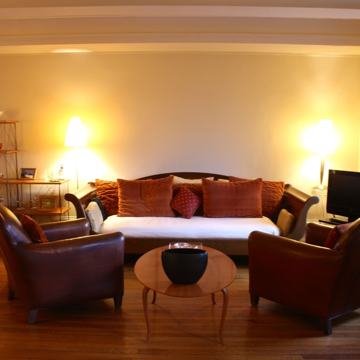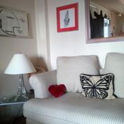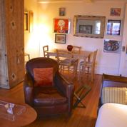 The apartment comes fully furnished. Designed with beam ceilings, hardwood floors, and marvelous French windows. The living room fits a dining area for guests and entertainment.