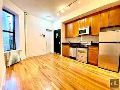 RENOVATED RENT STABILIZED ONE BEDROOM Beautifully bright top floor one bedroom, " steps from every convenience sitting on a quiet tree lined street This apartment includes a renovated open plan kitchen /living room with wall of shaker style wood cupboards and stainless steel appliances that include a micro hood and dishwasher. Your bedroom is naturally light filled from the two windows that it offers along with a customized closet and room for your Queen. Spacious windowed bathroom is finished with marble flooring and classic white subway tiled walls .