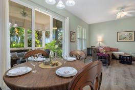 * Tranquil Outdoor Spaces: A covered lanai overlooking lush tropical landscaping, furnished with comfortable seating for relaxing or dining al fresco.