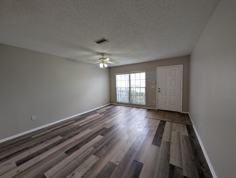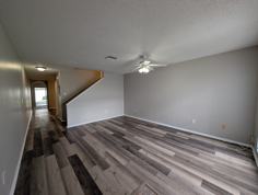 This beautifully updated 2-bedroom, 2.5 bath town home offers 1,496 square feet of comfortable living space, plus a versatile flex room that can easily be used as a home office, den, or even a third bedroom. Fresh interior paint and luxury vinyl flooring create a clean, modern feel throughout the home. The open-concept living and dining area provides plenty of room to relax or entertain, while the kitchen features ample cabinet storage, generous counter space, and full-size appliances. Enjoy quiet mornings or peaceful evenings on the screened-in back patio overlooking green space. Upstairs you will find two spacious bedrooms, office flex space with built in shelving, two full size bathrooms and a stackable washer and dryer. Conveniently located near shopping, dining, and major roadways, this townhome combines space, flexibility, and low-maintenance living in one inviting package. Schedule your showing today!