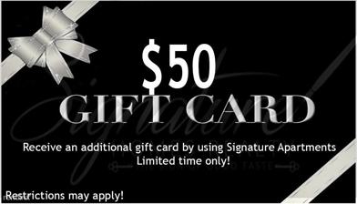 Kindly register JC Torres with Signature Apartments on your guest card as your referral when you apply. We are also able to help you find a rental home or purchase a home. We want our clients to know they have options.