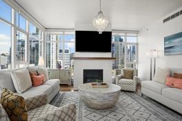 Absolutely spectacular, expansive views of San Diego Bay, the Embarcadero, Santa Fe Depot and the surrounding downtown cityscape define this spacious two-bedroom, two-bathroom fully furnished condo. Filled with natural light from floor-to-ceiling windows, this unit offers sophisticated-yet-comfortable decor and is bedecked in a relaxing color palette of soothing white shades offset with soft oranges and deep blues. Rental rate reflects minimum six-month lease.