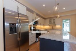 -New luxury kitchen with quartz counters, recessed lighting, kitchen island, stainless steel appliances, dishwasher, disposal