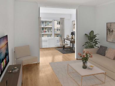 Located in Tracy Towers , a full-service doorman cooperative at the crossroads of Kips Bay and Gramercy Park, this residence is surrounded by a vibrant mix of restaurants, cafés, boutiques, and easy transportation options. And when it's time to unwind, you'll love the building's spectacular rooftop deck and garden-designed by Francisco DiBlasi-where you can enjoy sunsets, city views, and a moment of calm above it all. No pets. Coop approval needed. Some photos virtually staged. Contact us to schedule a private showing.