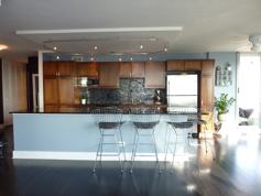 Have breakfast while gazing at the boats on the water. Cook dinner in your gourmet kitchen while watching the western horizon explode with sunset. Sprawl out on 45 sq feet of granite. Entertain your friends while flambéing bananas. Listen to 'Go Cubs Go' when (ok, if) the Cubs win. Watch the Navy Pier fireworks from your couch. Check traffic by looking down on LSD. Get the forecast straight from the clouds.