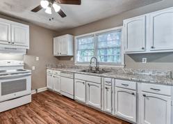 This beautifully updated ranch home offers 3 bedrooms, 1.5 bathrooms, and an open layout with an oversized kitchen-dining area and separate living room. Recent improvements include refinished hardwood floors, fresh interior paint, updated bathrooms, new ceiling fans, painted kitchen cabinets, a new countertop, and waterproof laminate flooring. The home is full of natural light and features a drive-in carport and a spacious fenced backyard. With durable four-sided brick construction, this home combines style and practicality in a prime location.