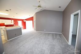 3/2 home located in Emerald Shores. 2 minutes from NAS Pensacola's back gate. Kitchen with breakfast bar and breakfast nook. Open living room with vaulted ceilings. Master suite with walk-in closet, separate wet room, double vanity and garden tub/shower combo. Covered patio for grilling. Corner lot with a fenced in backyard. Open floor plan with vaulted ceilings in the family room and kitchen. Close to NAS Pensacola and Corry Station, and Naval and VA Hospitals. Pet friendly with homeowner approval. There is a separate water meter for the sprinkler system