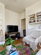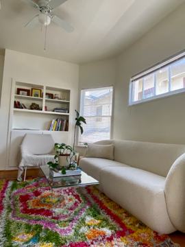 1/2 block from sand-- unfurnished, one bedroom, efficient, cozy apartment on walk street in Venice Beach. Open floor plan, full bath and kitchen. Upper unit with great light. Front and back entrance. Utilities are not included. No onsite washer/dryer, no dishwasher. No onsite parking but there are lots close by you can rent spots from directly. Photos may be slightly different than actual unit as there are 4 units in the building. Come see for yourself! Set up a viewing today.