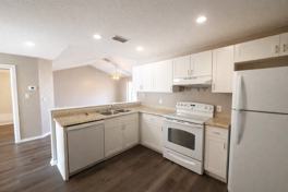 Welcome to this beautifully maintained 2-bedroom, 2-bathroom duplex with a 1-car garage that includes lawn service! The home features luxury vinyl plank flooring and soft neutral paint throughout for a clean, modern feel. Upon entry, you’ll find a guest bedroom and full bathroom to the left, while the garage with washer and dryer hookups is conveniently located to the right.