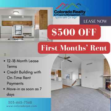 **All Colorado Realty & Property Management residents are enrolled in the Resident Benefits Package (RBP) for $45.95/month which includes renters insurance, HVAC air filter delivery (for applicable properties), credit building to help boost your credit score with timely rent payments, $1M Identity Protection, our best-in-class resident rewards program, and much more! More details upon application.**