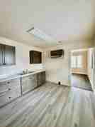 Step into comfort and style in this beautifully updated home featuring a stunning new kitchen complete with stainless steel refrigerator, oven, and vent hood. Modern gray cabinets and refreshed countertops create the perfect space for cooking and gathering.