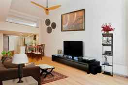 Kitchen is newly renovated with designer details: floating island, stainless steel appliances and a dishwasher.